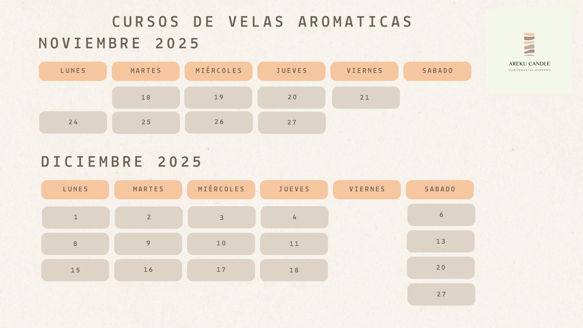 En nuestro curso aprenderás a hacer velas aromáticas en recipientes, moldes, tipo postre y mucho más.